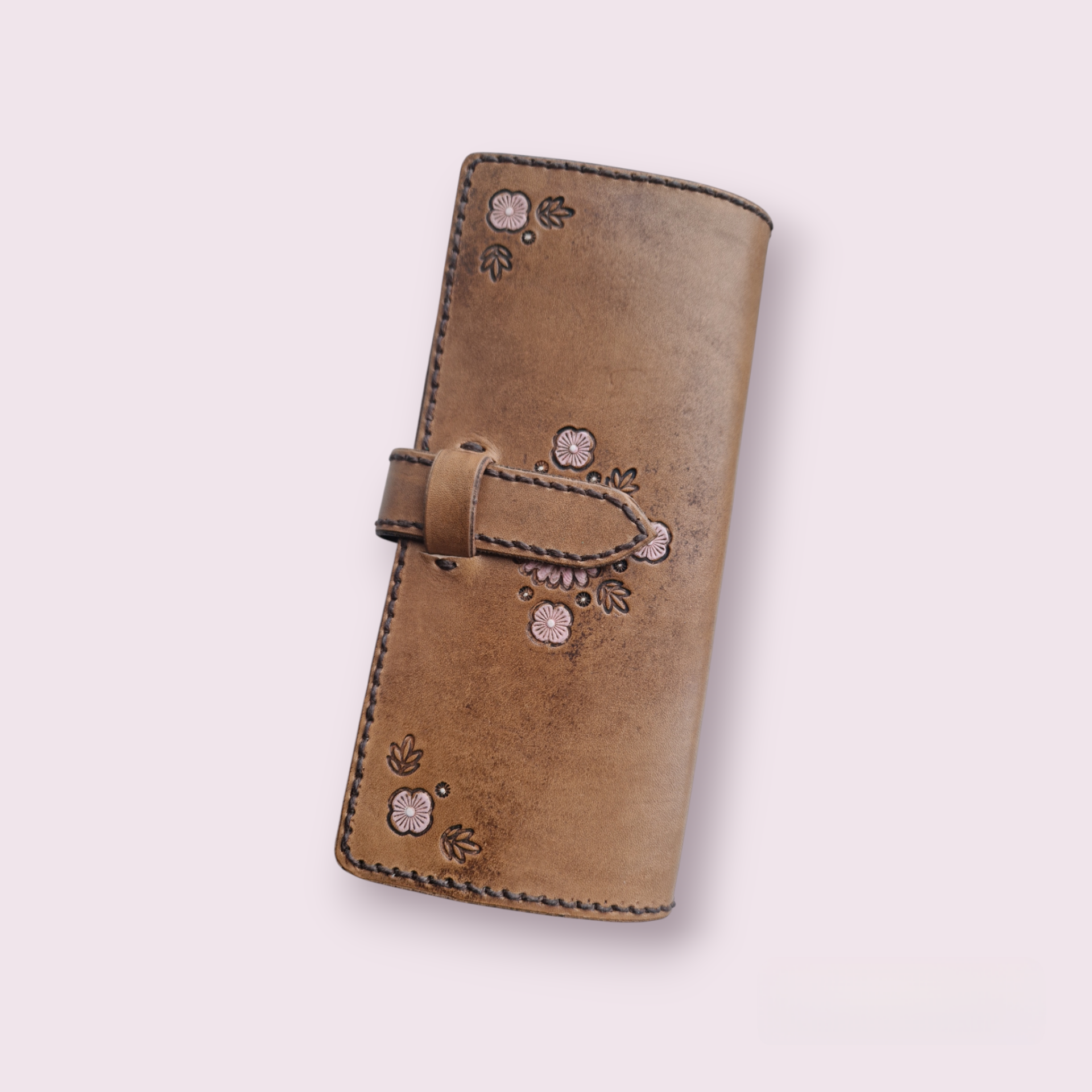 100% Leather Handmade stylish vintage style leather phonecase with a rose quartz stone and pink flowers
